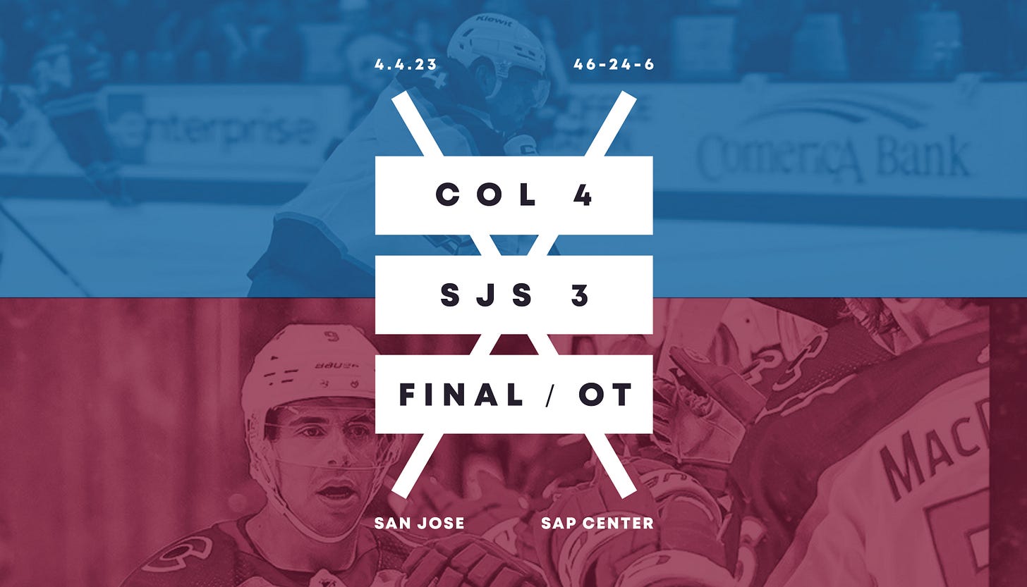 MacKinnon's Milestone Night Lifts Avs to OT Win in San Jose