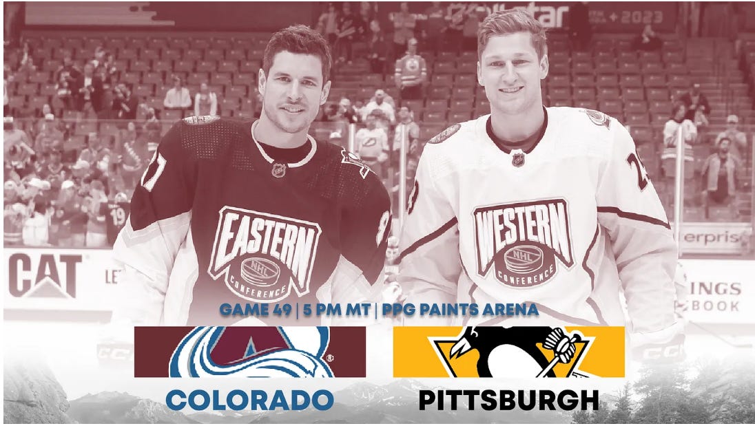 Byram is back as the Avs battle Pens tonight coming out of bye week and all-star break.